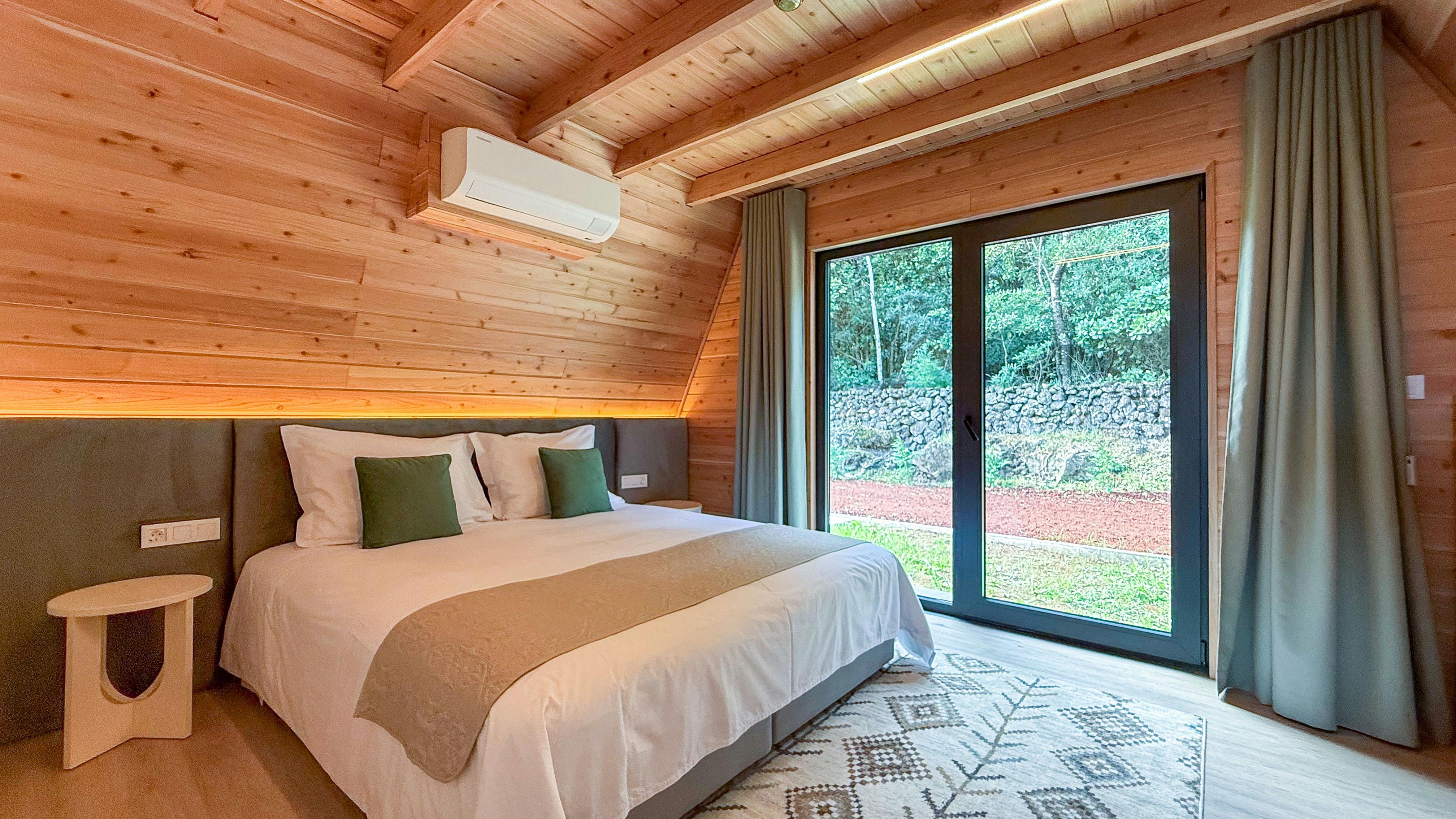 It features a master bedroom, a cozy mezzanine, a spacious living room, a fully equipped kitchenette with dining area, and a complete bathroom. The villa opens onto a private outdoor area, perfect for moments of rest and tranquility. It’s a practical, elegant, and welcoming option for those who value extra space without compromising on comfort or quality. The villa accommodates up to five guests two in the master suite and the remaining in extra beds.